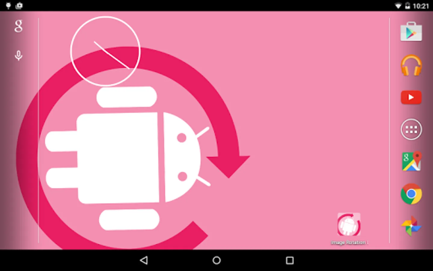 This app is a live wallpaper which rotates a picture continuously. You can specify a direction, a speed, a position and a size.
