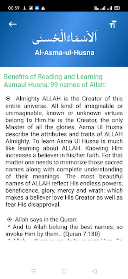 Assalamu-Alaikum, Checkout this app to learn and read 'Asma-Ul-Husna'.