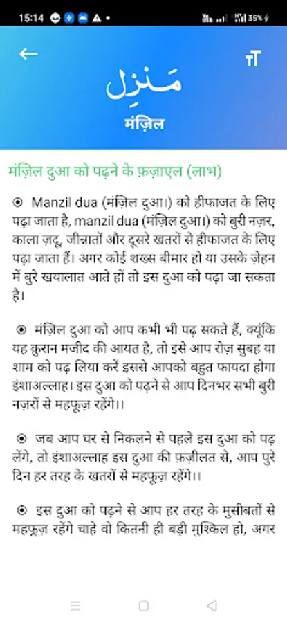 Assalamu-Alaikum, Checkout this app to read 'Manzil'.