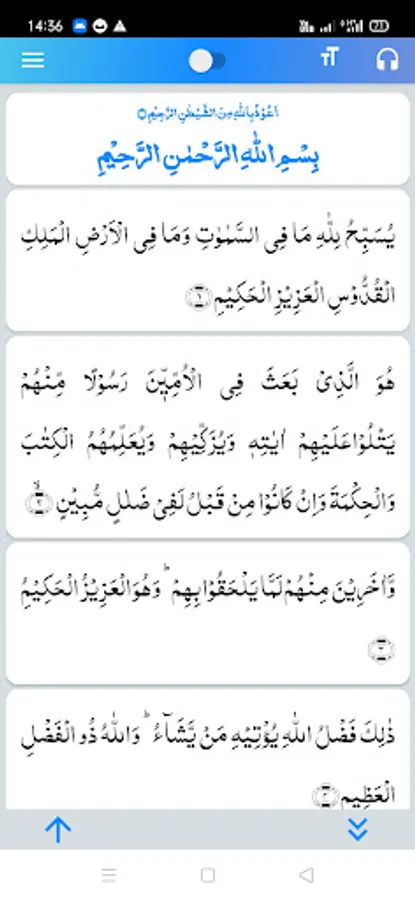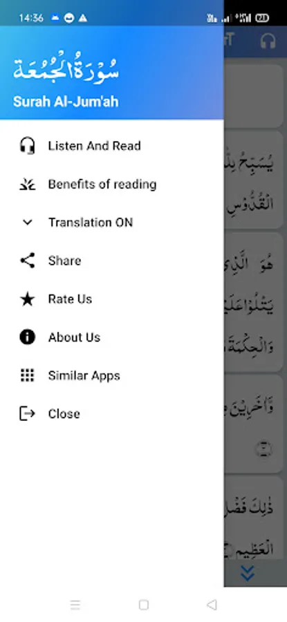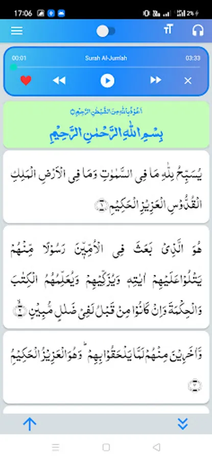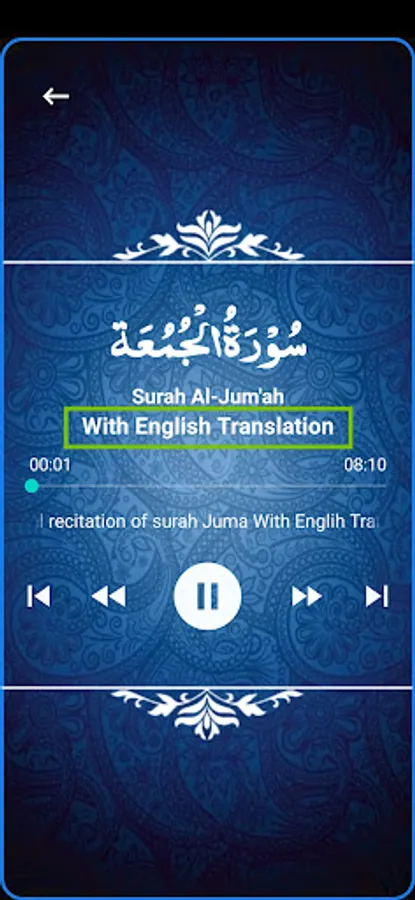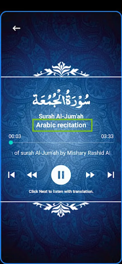 Get this free and logical mobile application of Surah Al-Jum'ah in order to listen to, read and learn the Sacred chapter of Surah Al-Jum'ah in the best fashion.