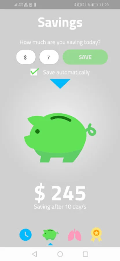 As a non-smoker you can save a lot of money. This App shows you how much money you are saving every day. This allows you to reschedule what you will spend your money on.