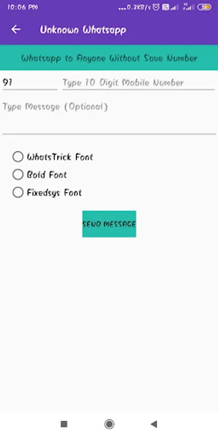 directly message without save its number, also send message with different font style like Bold, Arial, Striker etc Font style.