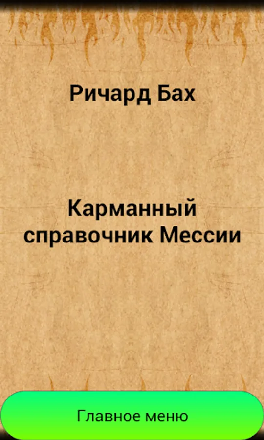 So before you book. And this book is not the usual ... It's "Pocket Guide Messiah" by Richard Bach - or rather, its Android - version. Mentally question you ask. Now close your eyes, open the book at random, open your eyes and read the answer ... It might work flawlessly fear will sink into a smile, doubts will flee away from the sudden bright insight. But ...... In this book may be all a mistake. Of course, it can. But it may not be. Error or mistake - this is not a book solves. Only you can say that you are not a mistake. Responsibility on you ..