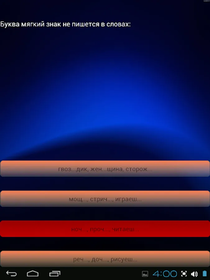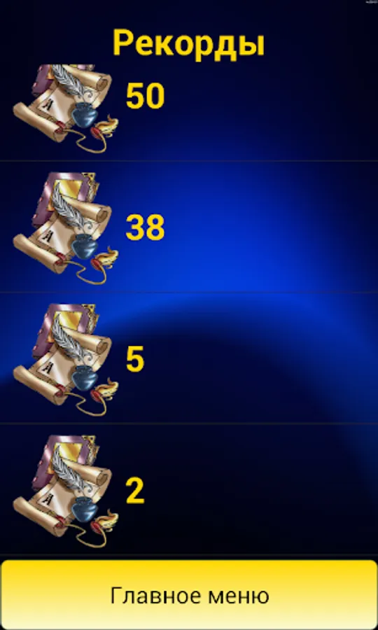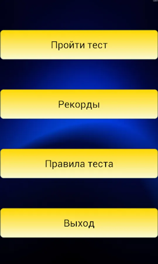 You are invited to answer 50 questions. You can make up to 5 faults. The app contains more than 1,300 questions, so the test can be passed repeatedly on the Russian language! Their results can be tracked in the "Records".