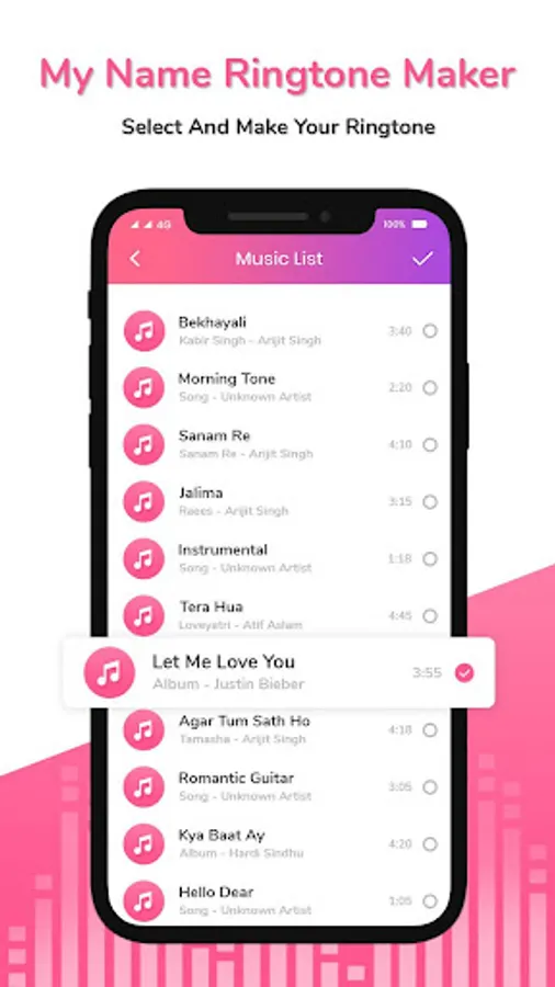 - Trim music and add it from your name ringtone