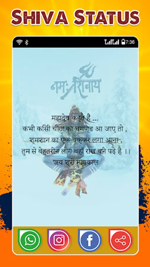 Select shiva quotes, mantra from the collection on hand-picked shiva wallpapers and make Shiva status images. Adjust the opacity of quotes and background to make creative god shiva images.