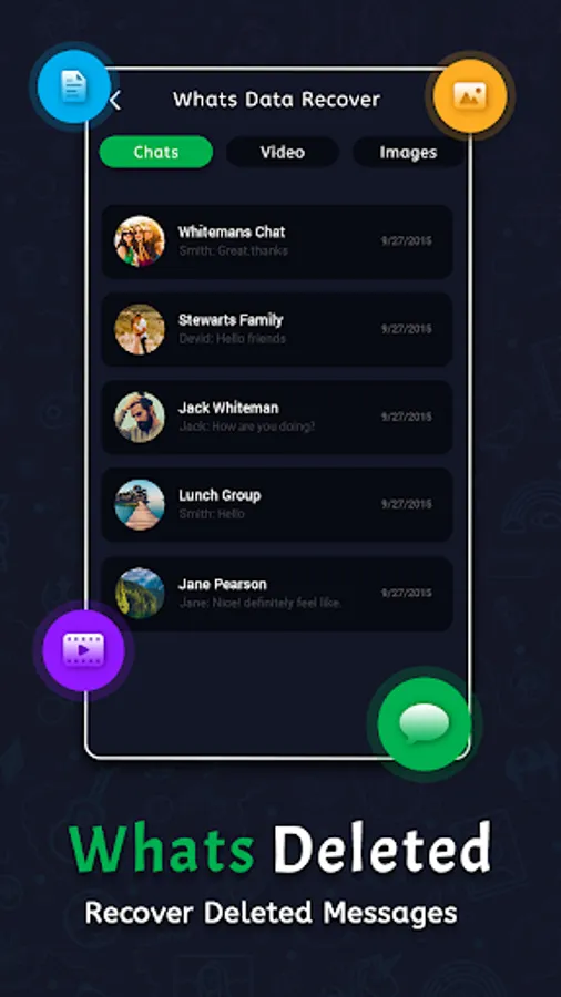 View Deleted Whatsapp messages, photos, images and chat recovery app for whatsapp : This is one of the best app which provide you the function to restore or undelete messages.
