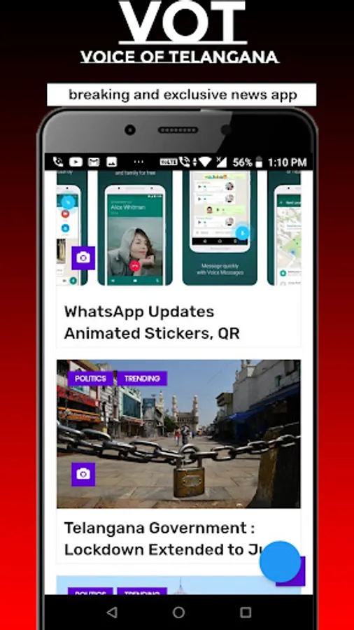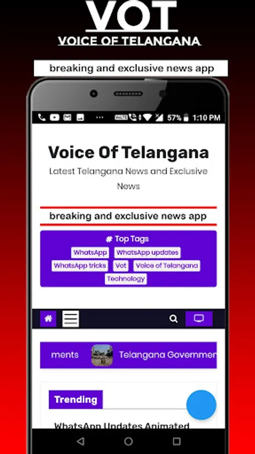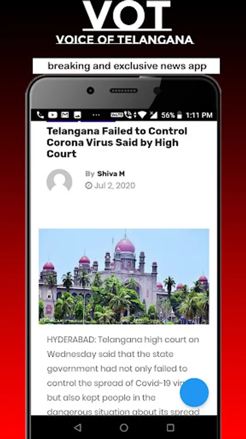 The Voice of Telangana app brings to you the latest, breaking news in English. Whether it is Latest News, Tollywood News, Telangana News,News Headlines, Breaking News Headlines, News Today, Sports News, Movies Reviews, Tech News, Lifestyle News, Hyderabad News, all local News - all the news, views and opinions are here. When it comes to news, this is the only app you will ever need. Stay connected with the latest news stories, live TV, videos, photos and more from Telangana with the new Voice Of Telangana app. Get breaking news alerts, discussions, exclusive interviews, analysis, features and commentary from Voice Of Telangana. Get more about the news that matters to you, all in-depth, on your device.
