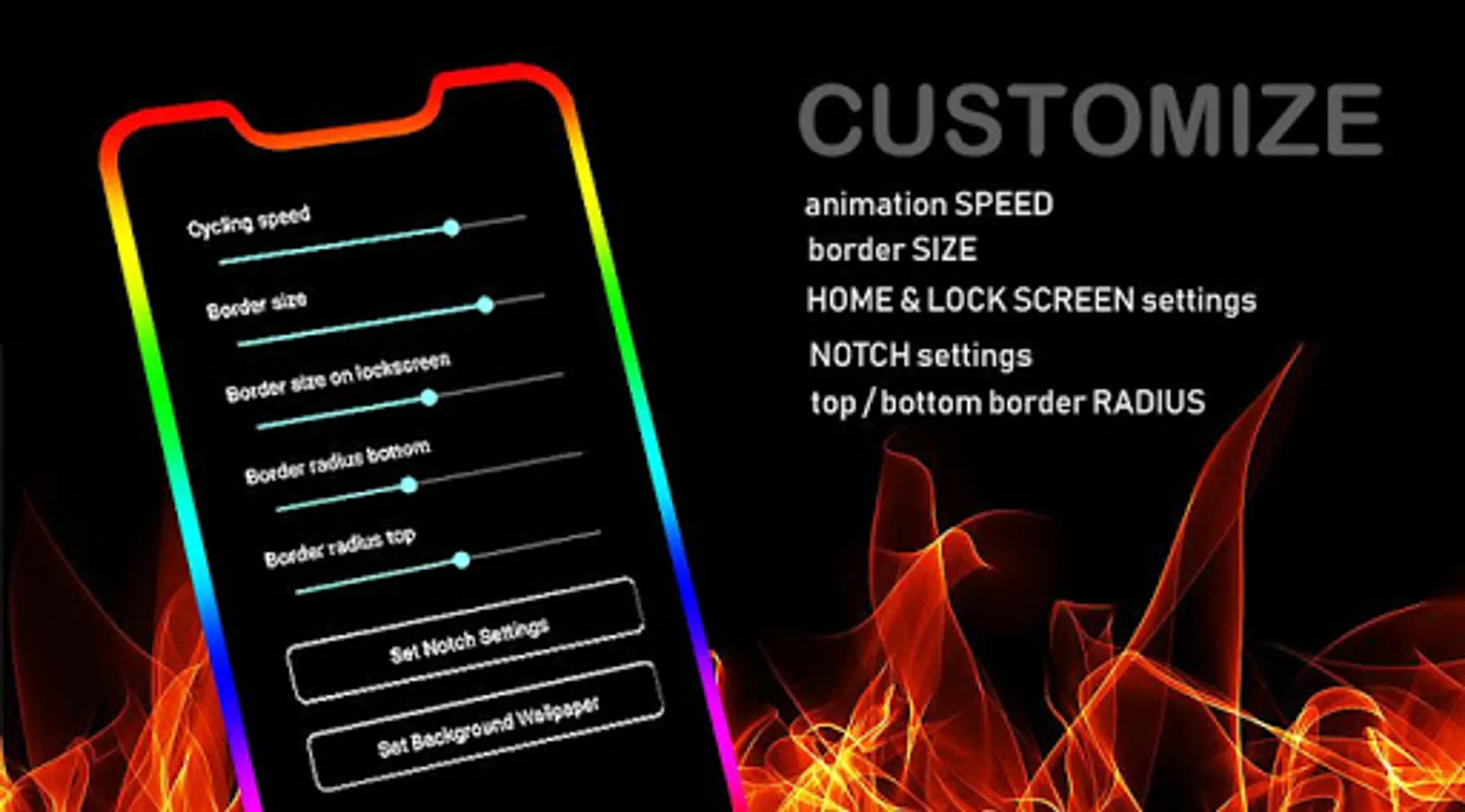 # Custom feature to add any photo from your phone gallery as wallpaper on screen with moving light on the edges of the phone.