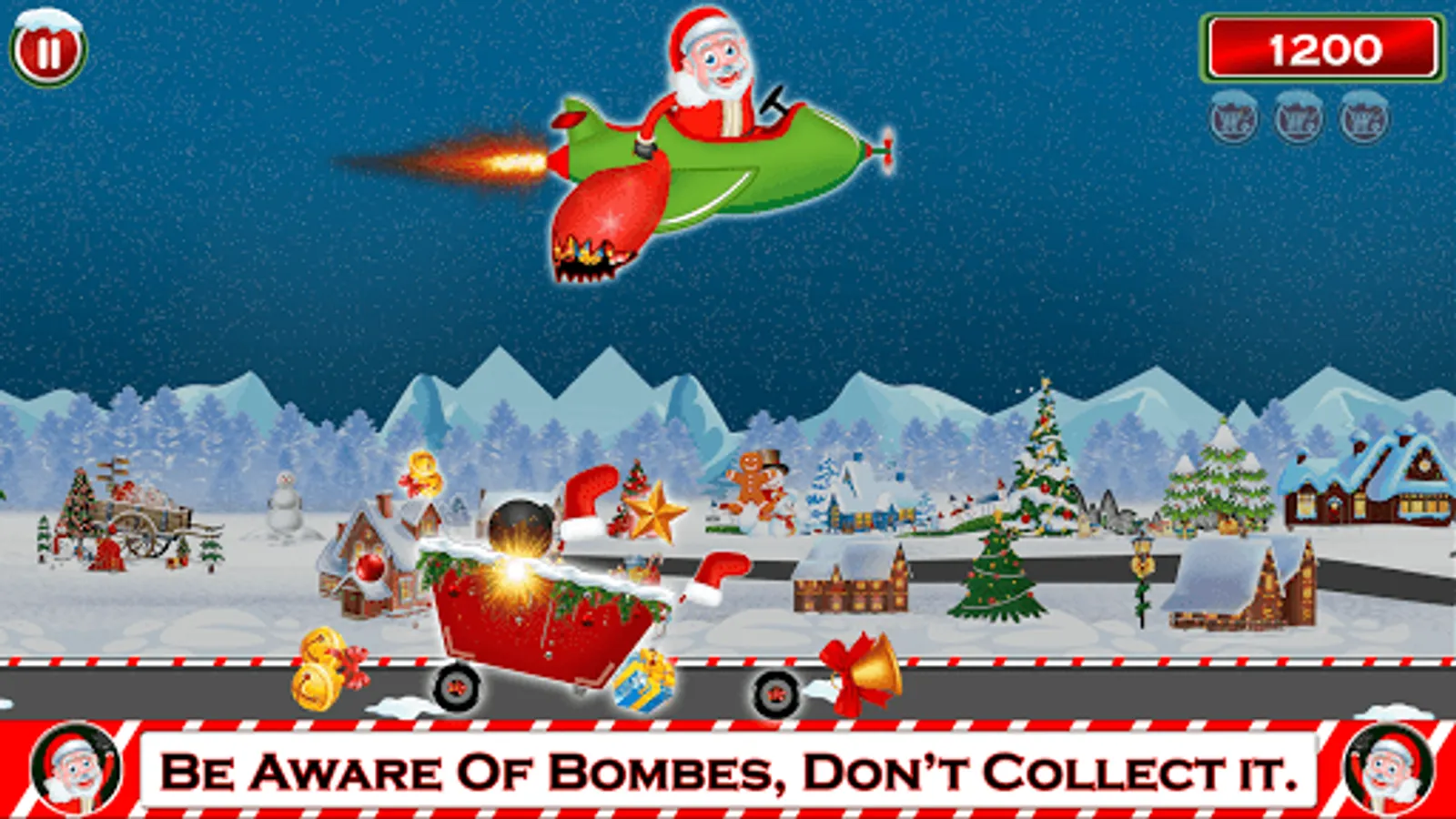 You can play the game by tilt and touch. Move your cart by touch left or right and try to catch gifts which is through by the santa calus. If you miss 3 gifts, you lost the game. Collects all the gifts like snowman, christmas flak, socks, bell etc and make the highest score. Be aware of the object like heavy wait object becuase they will break your christmas cart. Game will be more fun if you get highest scores.