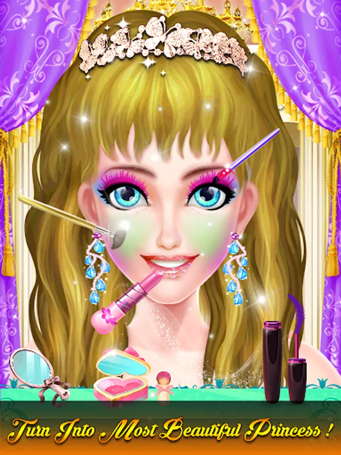 Today princess is going to complete one year for their marriage.so beautiful princess needs your help to awesome makeover for celebration party and Christmas celebration in this princess salon makeover games.Both party is in the same day so she is very much happy and get ready for bridal facial makeup salon.princess need to go to the salon for Perfect Makeover and Dress up.Make different beauty work for spa ,dress up, makeup, and hair salon to make a stylish hair for our beautiful girl in this fashion game.play this girls makeup game to give beautiful and pretty makeup and royal girls look to princess like miss world and miss diva.so choose the best and glamour makeup in girls game.Princess have a dream to participate in fashion diva.so prince arrange a surprise for princess like a miss world competition games for girls.