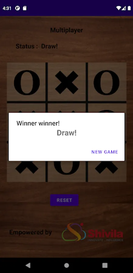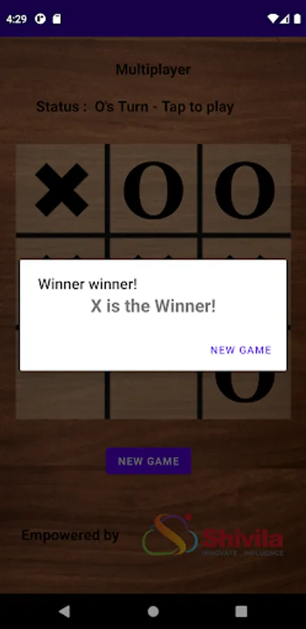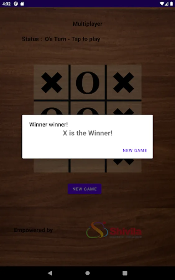 Android Tic Tac Toe supports one-player and two-player gameplays. You can play the game against another human or your Android device.