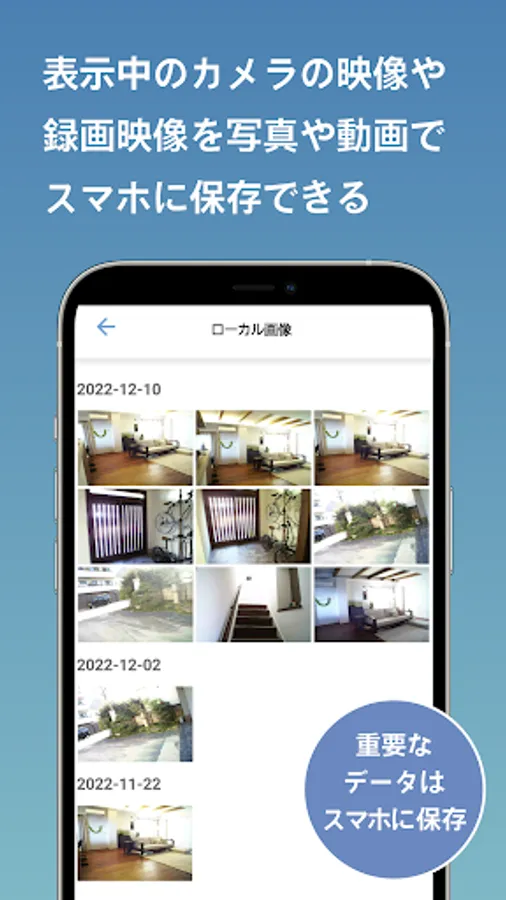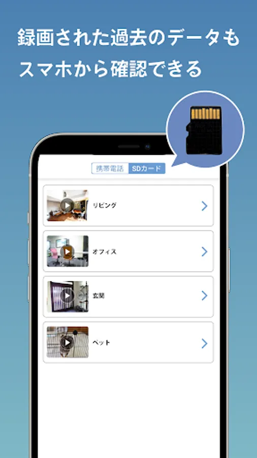 You can check the image of the camera on your smartphone, and you can also check the past images recorded on the microSD card.