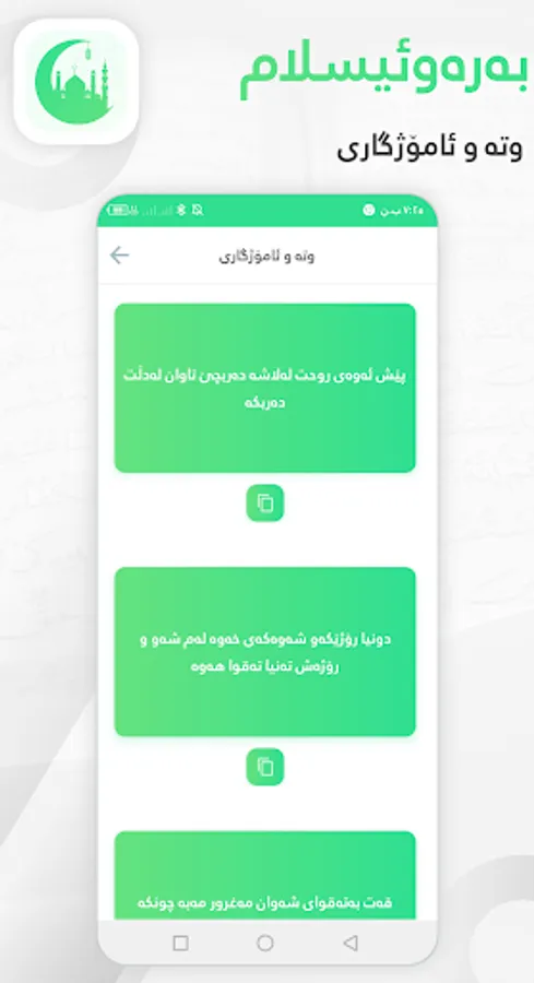 چەندین فێرکاری تێدایە وەک نوێژ کردن و دەستنوێژ و هتد...