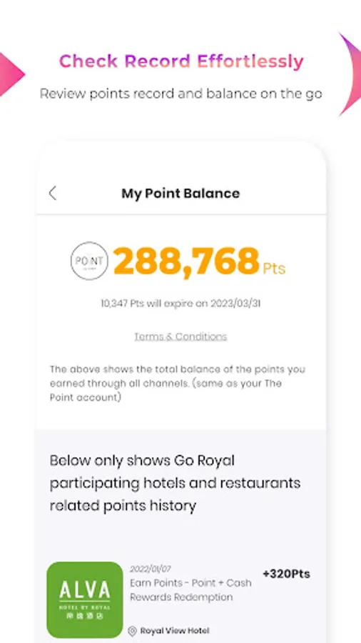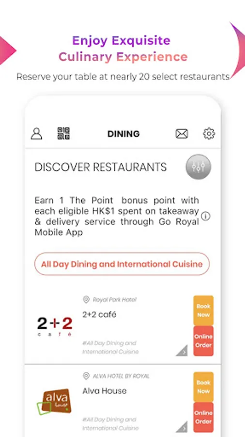 Register to become a Royal Member for free, you can enjoy year-round dining discounts. What’s more, you can earn The Point bonus points with eligible spending at any participating hotel or restaurant to redeem member-exclusive rewards including hotel stays or culinary experiences.