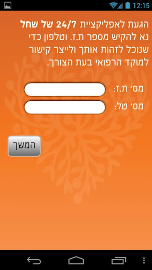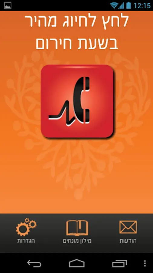 לחיצה על כפתור האפליקציה מפעילה חיוג אוטומטי למוקד הרפואי של שחל ומבצעת איתור מיקום.