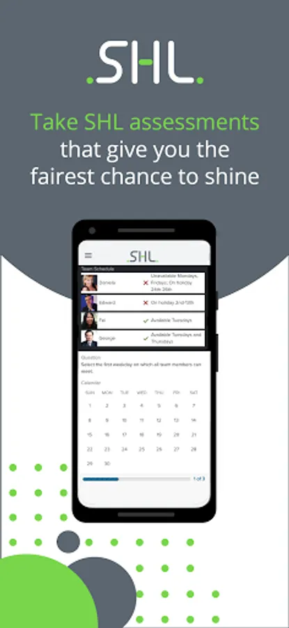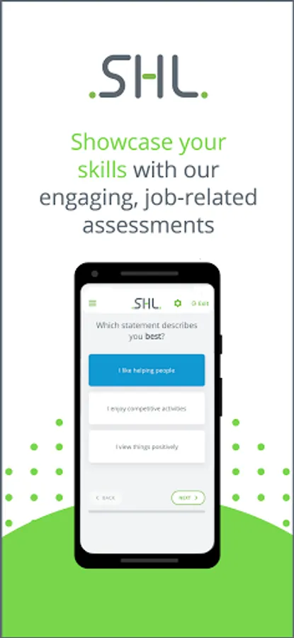 SHL supports businesses around the world with an advanced assessment experience that helps candidates like you demonstrate your skills, potential and fit. With help of our app, you can quickly complete assessments using your mobile device anytime, anywhere you want.