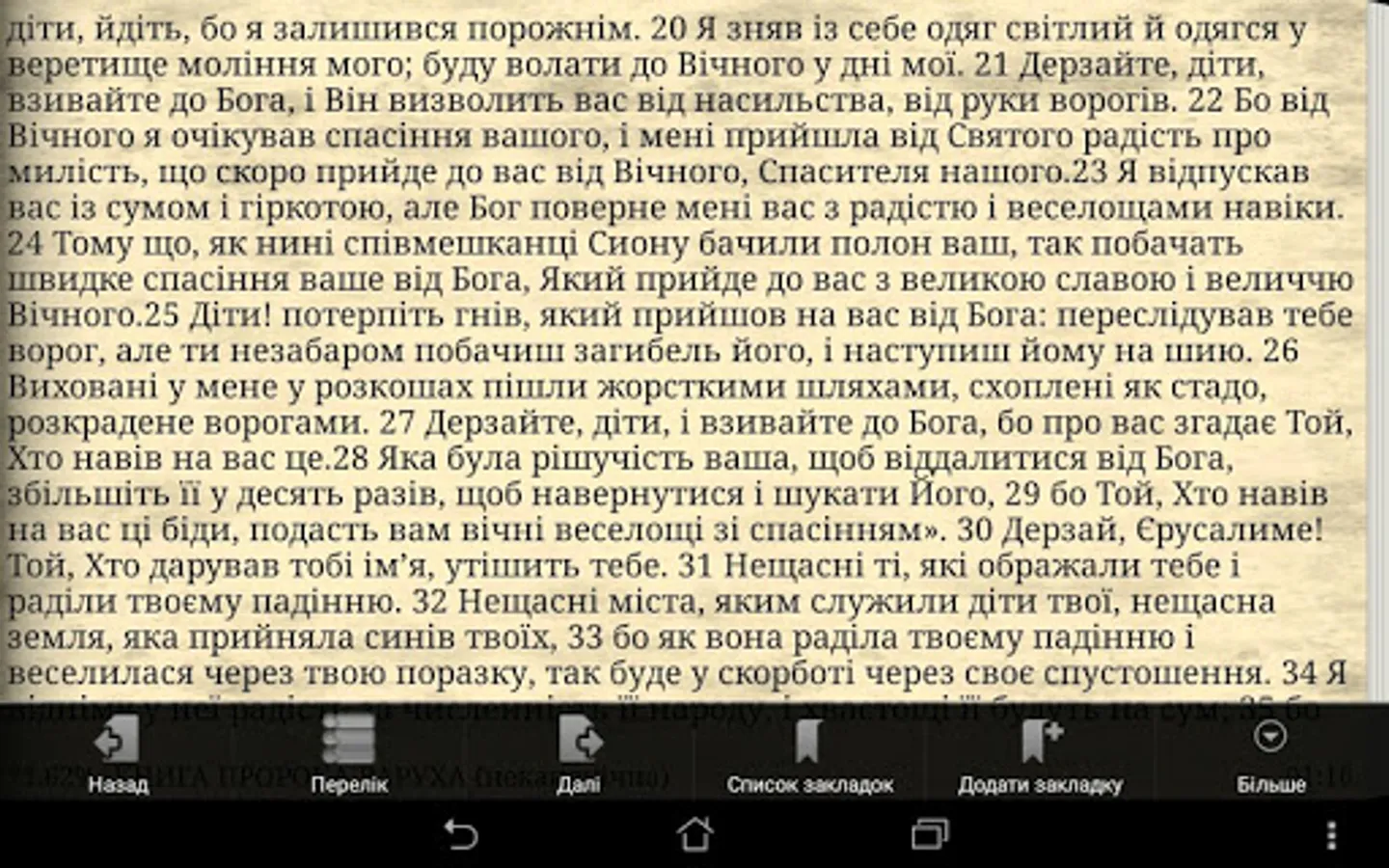 Books Scripture of the Old and New Testament in Ukrainian translation with parallel sites and applications that support the creation of bookmarks and search.
