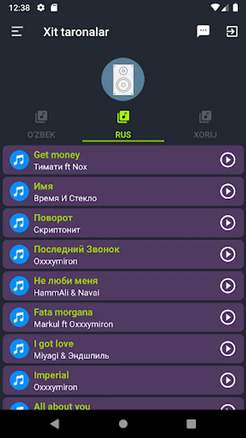 Xit qo'shiqlar dasturi yordamida siz o'zingiz yoqtirgan va ommabop bo'lgan o'zbek, rus va xorij musiqalarni topishingiz va tinglashingiz mumkin.Dasturdagi qo'shiqlar doimo yangilanib turadi va siz dasturni qayta yuklab olishingiz shart emas. Bir marta yuklab olasiz va doimo eng xit taronalarni bepul tinglash imkoniga ega bo'lasiz.
