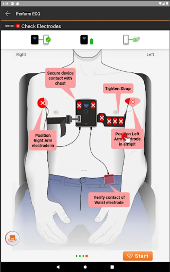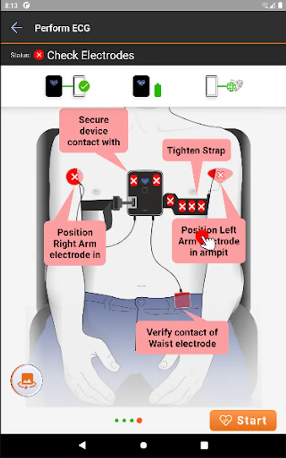 The SmartHeart® Pro application enables a user to perform a full 12-lead ECG and rhythm strip in real time to enable review by the medical professional