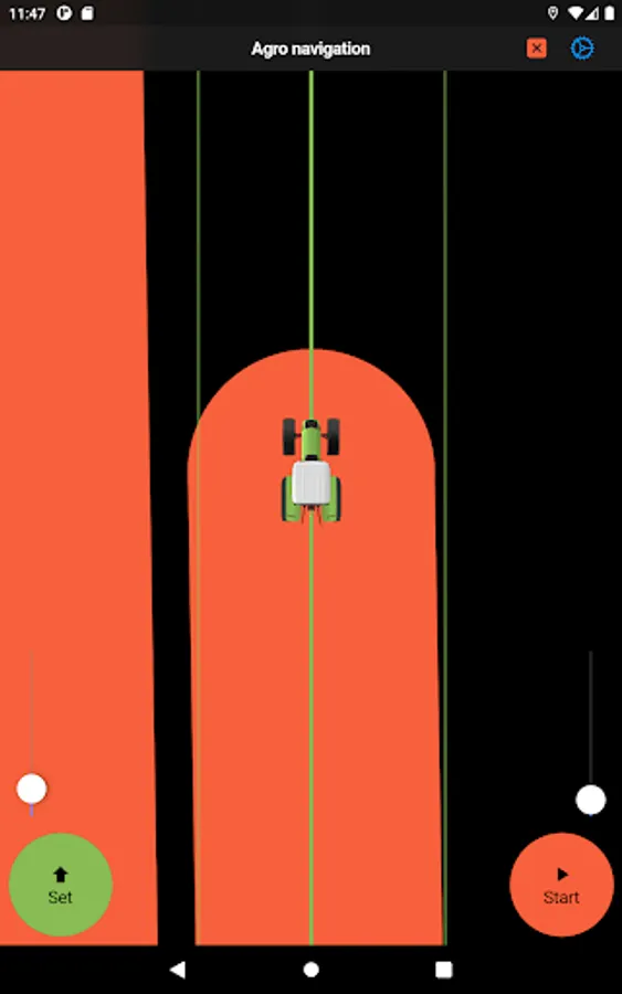 The Agro Navigation helps you navigate in parallel lines while driving in the field.