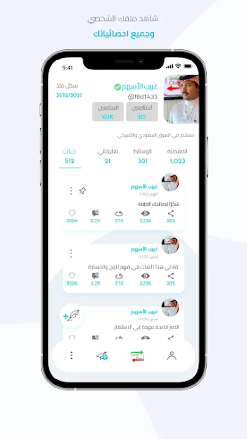 نحن تطبيق تواصل إجتماعي يهتم بالنقاش الهادف حول الاسهم في أسواق المال وتنمية الثقافة الاستثمارية ومتابعة التحركات الفنية للإسهم