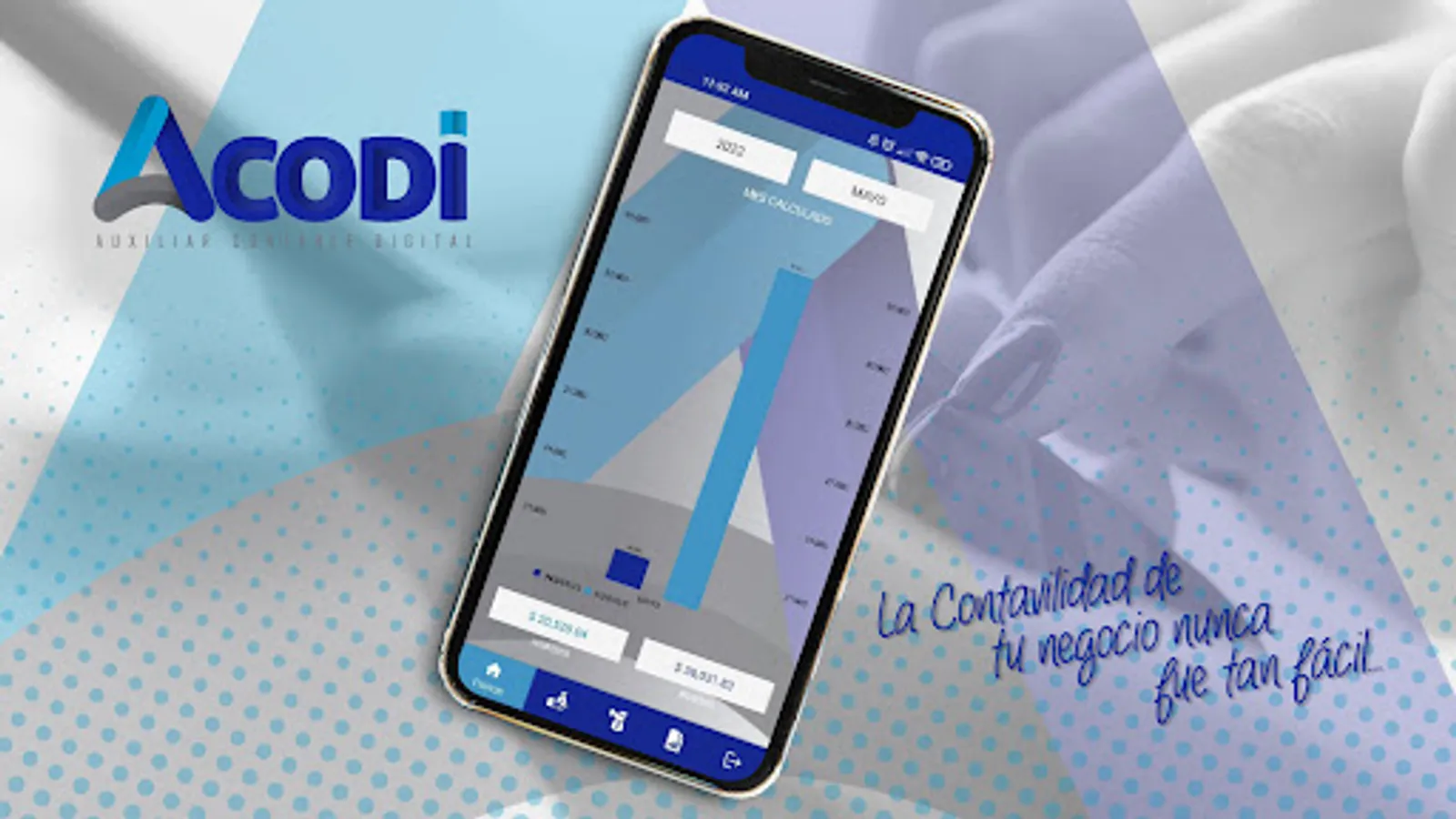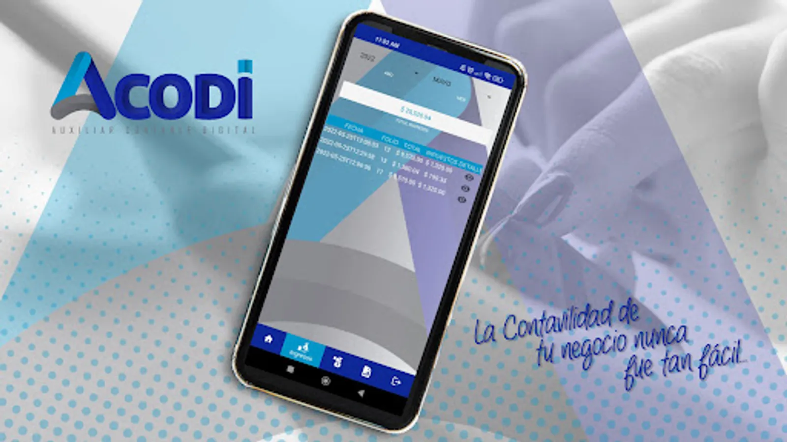 ACODI is a mobile application, whose main function is to support the user, to take control of their finances, personal budget control or the cash flow of a business. It has a variety of functions and features to facilitate the management of both personal and business accounting, such as: