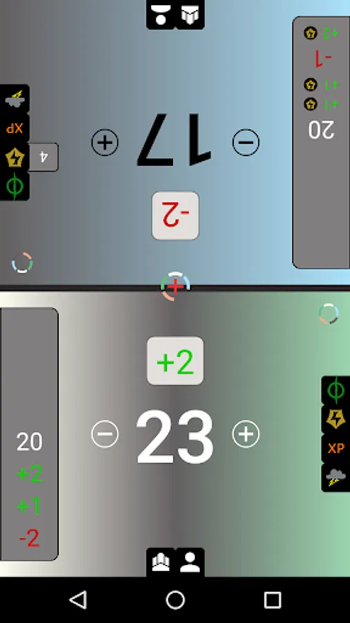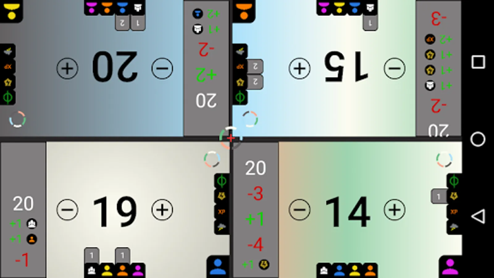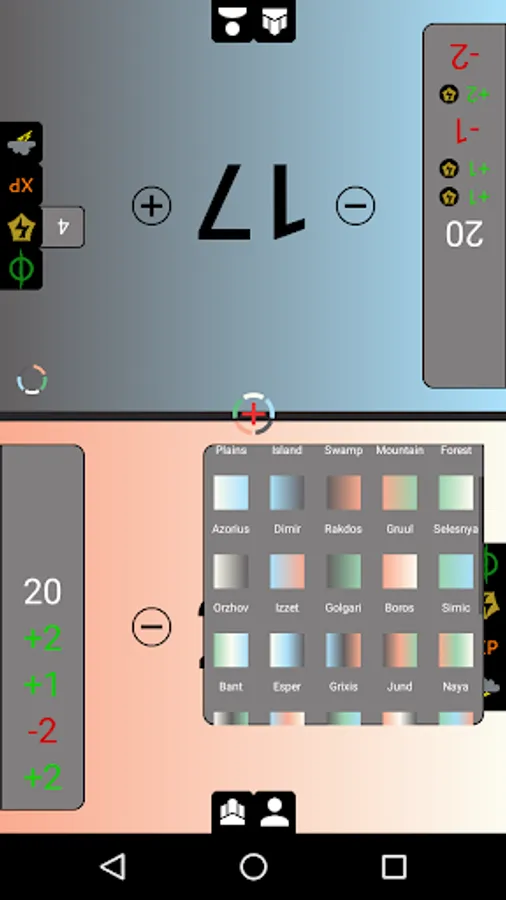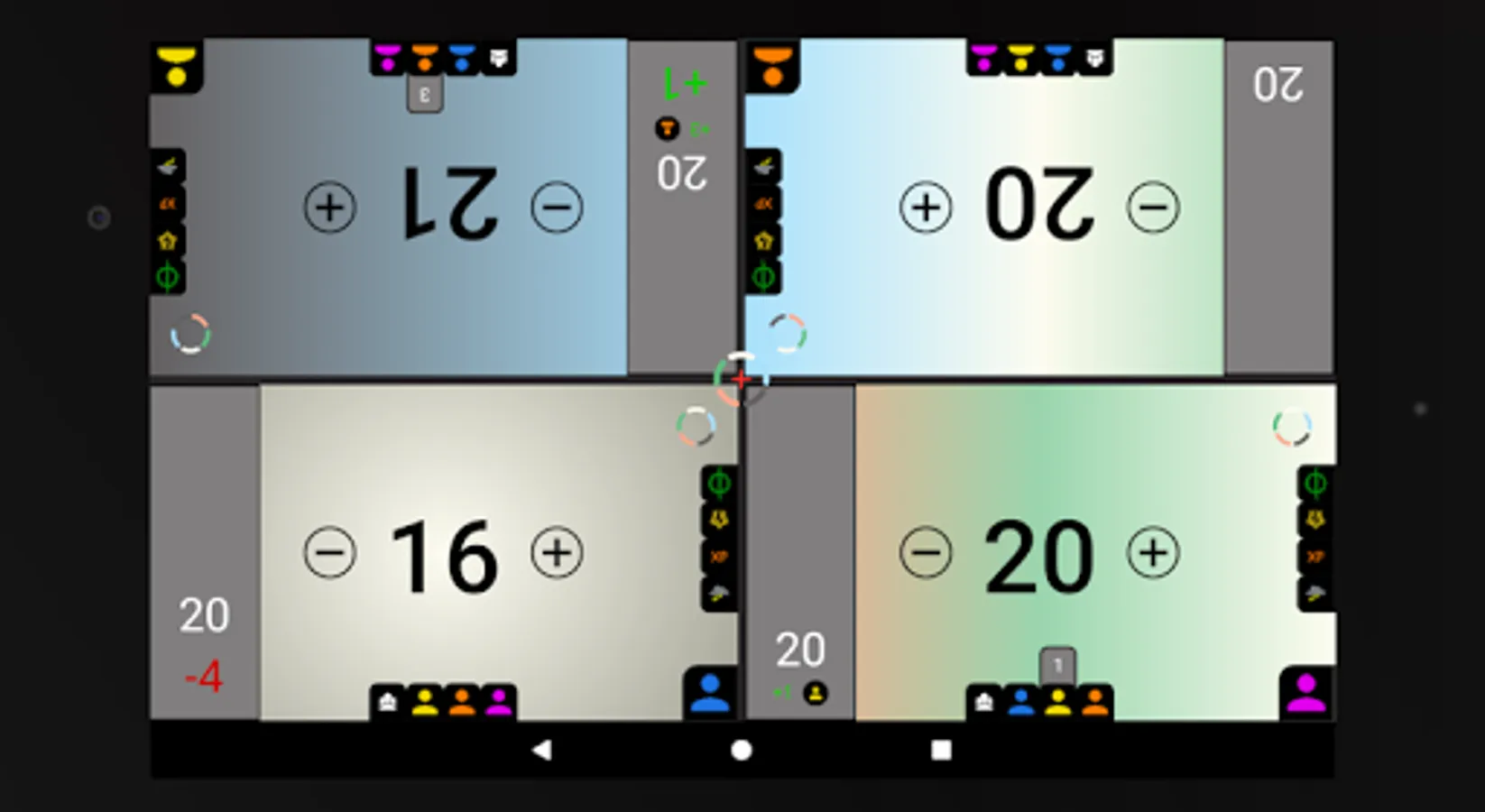 I've also implemented several other minor features, including the background colors (a simple gradient) for all of the various MTG factions/clans/shards/wedges (alongside their names, for handy quick-reference), a button to rotate the opposing screens to face you (if you're stuck doing all the record-keeping yourself), as well as the ability to hide all of the widgets from your view simply by tapping on your Life Total or anywhere in the empty space of the screen (for those who appreciate a little less clutter). By the way, I've designed Magic Life Auditor to scale wonderfully on both 7" and 10" Android tablets!