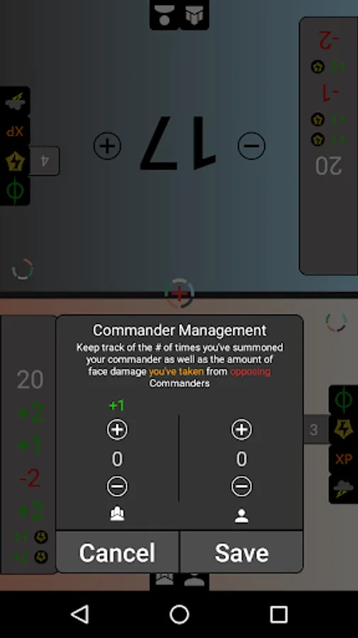 In addition to Life-tracking, I've developed two extremely simple widgets: a Counter Tracker and a Commander Tracker. With the Counter Tracker widget, you can keep track of the total Poison, Energy, Experience, and Storm counters you have. With the Commander Tracker widget, you can keep track of both the number of times you've summoned your Commander this game as well as the amount of direct face damage you've received from opposing commanders. As mentioned previously, additions and subtractions of all of these values will also be recorded in the Audit History.