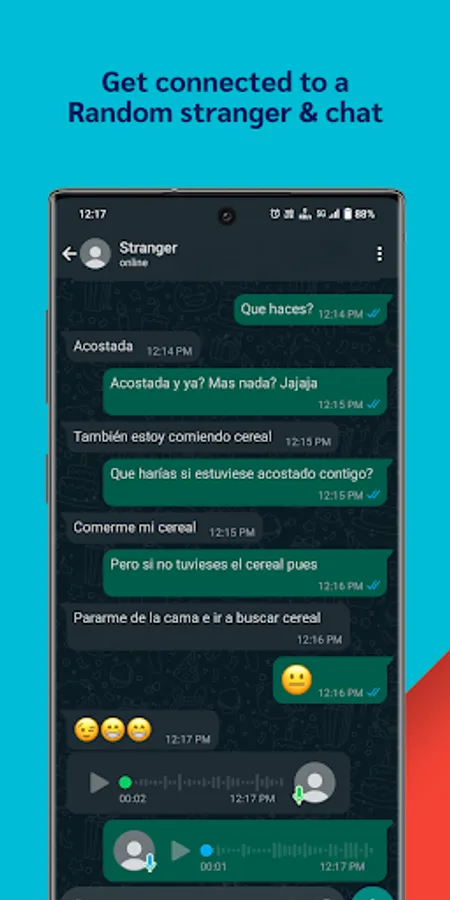 This is a Spanish chat app in which you can chat with complete strangers without revealing your identity.