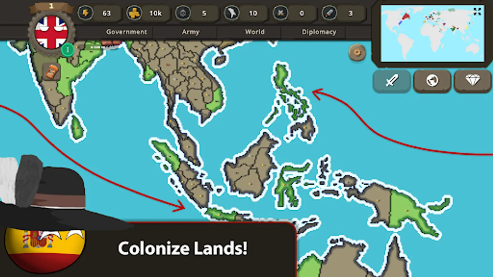 In combats, your aim is to cross your enemies' borders by sending your units to the battlefield. Enemies will not accept that to happen that easily. So, you should call your allies to battle and you should build strong armies!