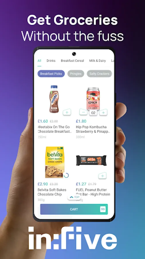 Simply order your groceries through our intuitive app, then collect them at your local in:Five smart store. Our automated system picks and gets your items ready for a fast and smooth pickup.