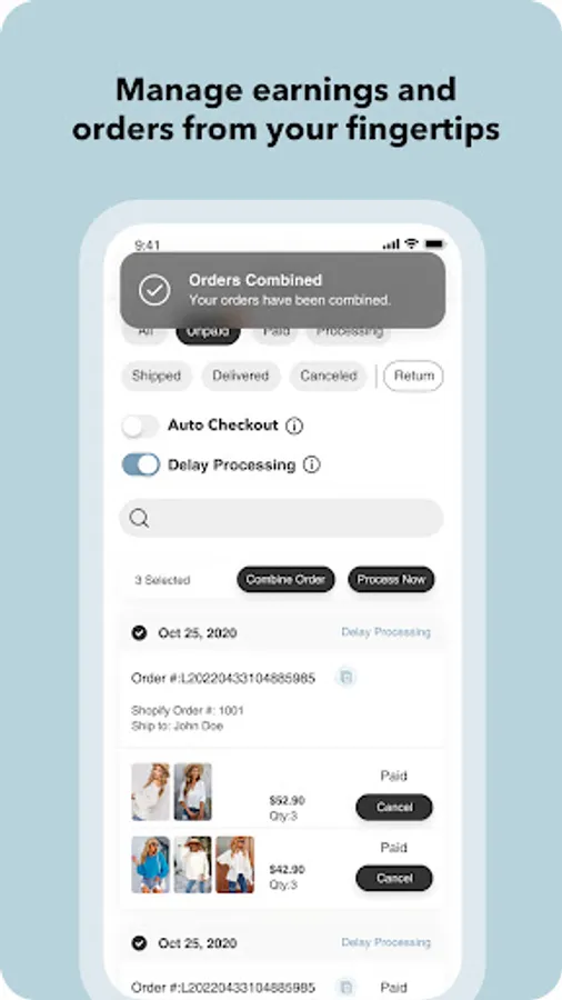 With zero inventory overhead, Trendsi removes the risk and hassle of inventory management and unsold products. You’re only charged when you make a sale, and there’s no need for you to store your own inventory.