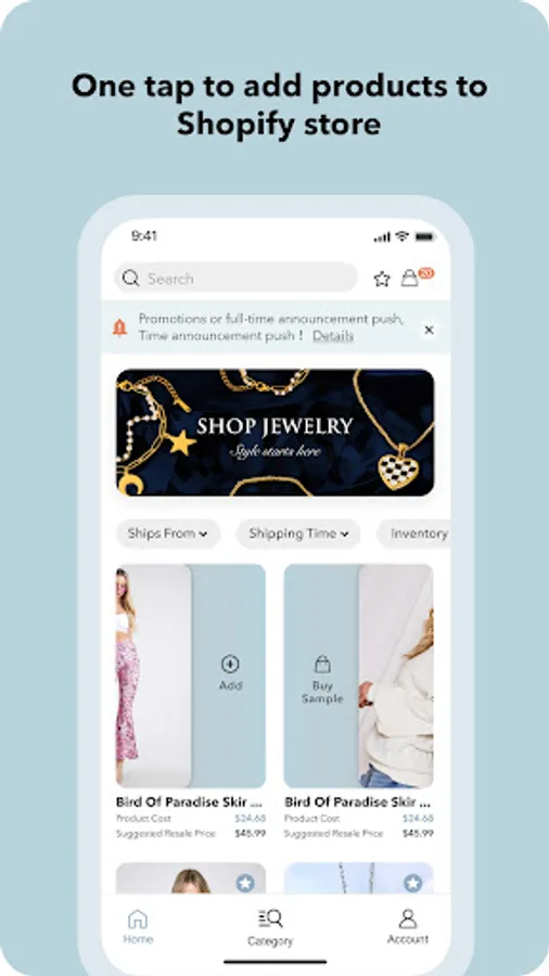 Search products by category and add with one click to easily merchandise your online store. We perform quality checks, package and ship orders directly to your customers with your personal branding inside the order.