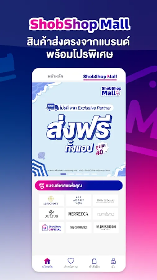Never miss out on valuable promotions from authentic brands. Every sale event Shop all famous brands and outlets here. Wherever you are, you can shop with peace of mind with a professional pick-up service. Safe and worry-free Or to order products directly from the brand through ShobShop Mall, there are new promotions. Let's update it throughout the month. with special discounts from those who like to shop every month