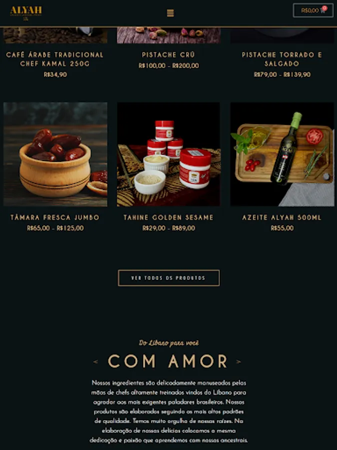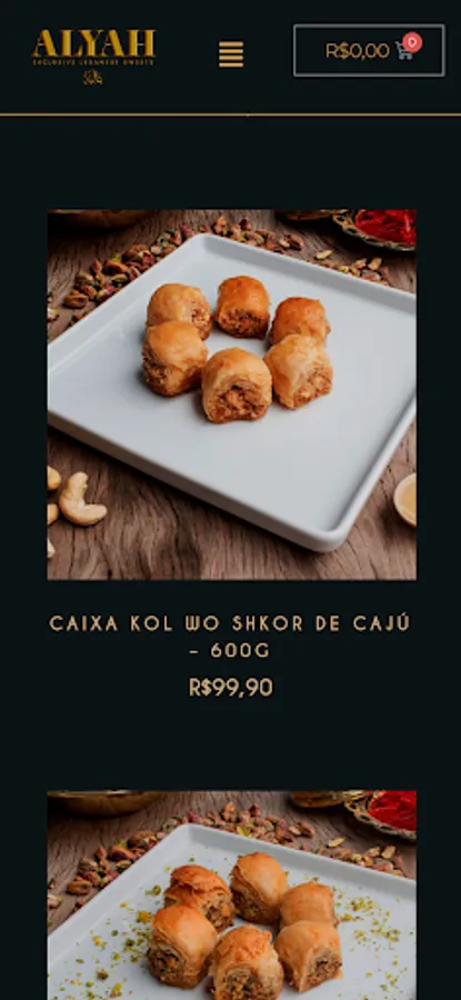 The Alyah restaurant has a cozy atmosphere filled with elements that lead to an incredible experience. Rich and millenary Lebanese cuisine, with unrivaled flavors and aromas, are represented and always present in our restaurants. International chefs command our kitchens, without ever losing the crafts, affection and love, typical of Lebanese families. Our desire is to offer a complete experience with the very best in Lebanon. That's why, in our Flagship store, you can taste, in addition to sweets, the highest Lebanese cuisine and experience all the colors, aromas and flavors of this magical region. Be sure to visit us and try our hot and cold starters, salads, dishes, sfihas and persimmons, as well as our alcoholic and non-alcoholic drinks menu and our narguile menu.