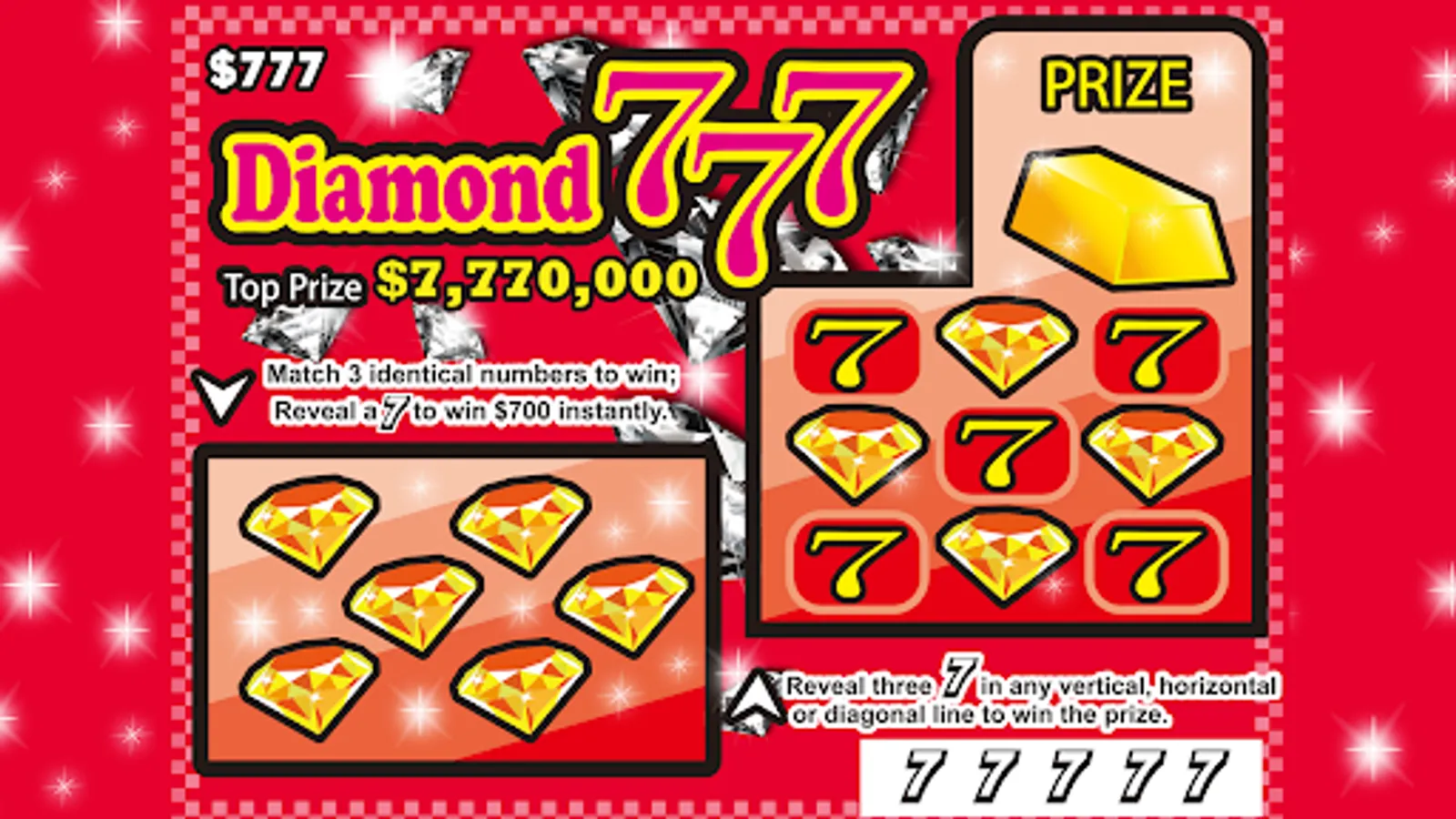 All the lottery tickets you can play: Crossword, Blackjack, Vegas slots, Cashword, Diamond 777 scratchers...