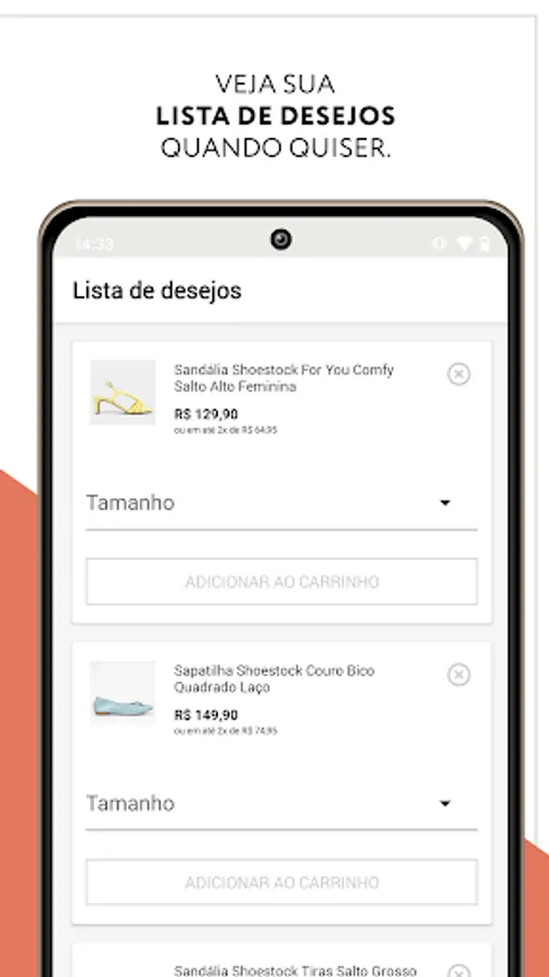 We always seek to offer the best shopping experience on the internet. In the app, you can easily choose your new shoes, bags and accessories according to product categories, conveniently and quickly.