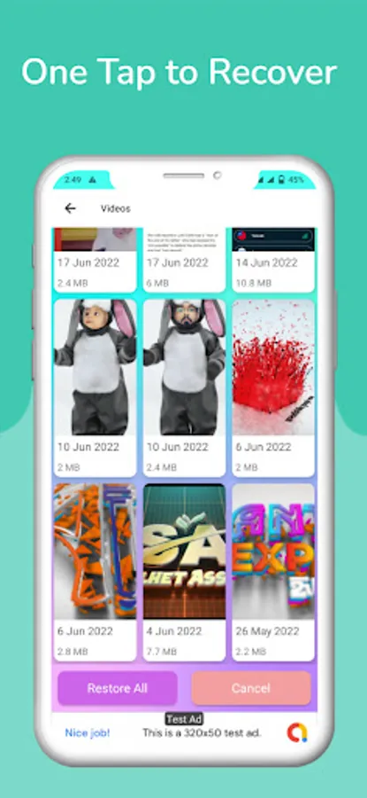 Video, Photo & Audio Recovery app is very fast, simple and easy to use