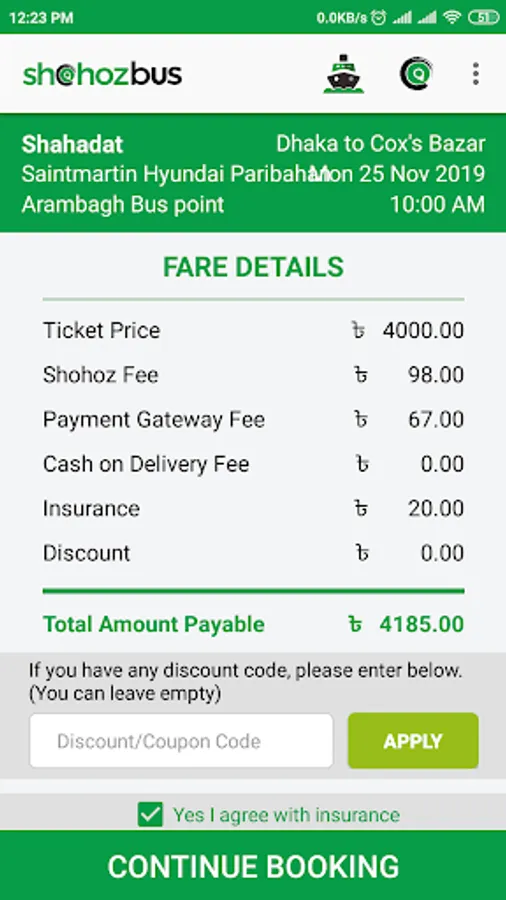 "Shohoz" means easy. As the name suggests, it is the easiest way to buy bus tickets in Bangladesh. The Shohoz app enables you to buy bus tickets easily and conveniently from anywhere. You can pay for your tickets via credit / debit card, internet banking or mobile banking. Payment can also be made via cash when the tickets are ordered through "Cash on Delivery" service.