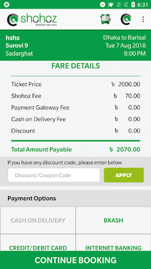 "Shohoz" means easy. As the name suggests, it is the easiest way to buy launch and steamer cabin tickets in Bangladesh. The Shohoz app enables you to buy launch / steamer cabin tickets easily and conveniently from anywhere. You can pay for your tickets via credit / debit card, internet banking or mobile banking. Payment can also be made via cash when the tickets are ordered through "Cash on Delivery" service.