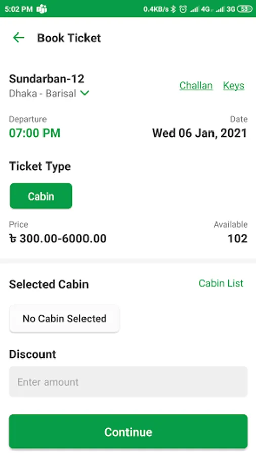 This app works as a mobile and fast medium for selling Cabin and Deck tickets.