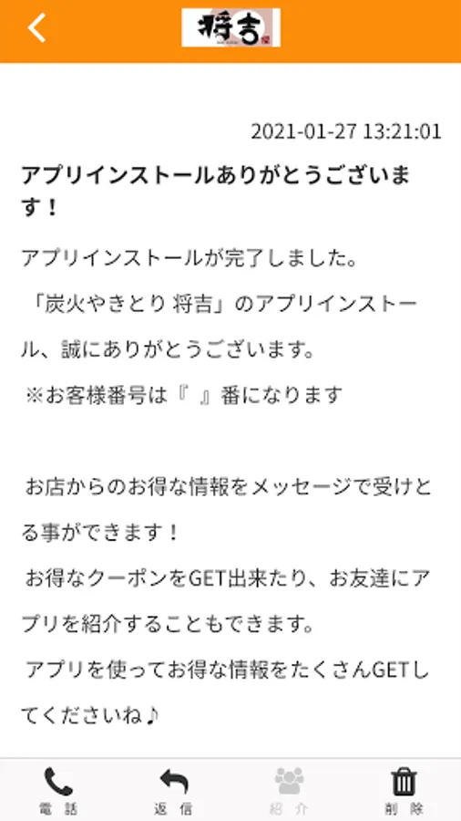 You can introduce Yakitori Shokichi's app to your friends through SNS.