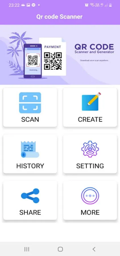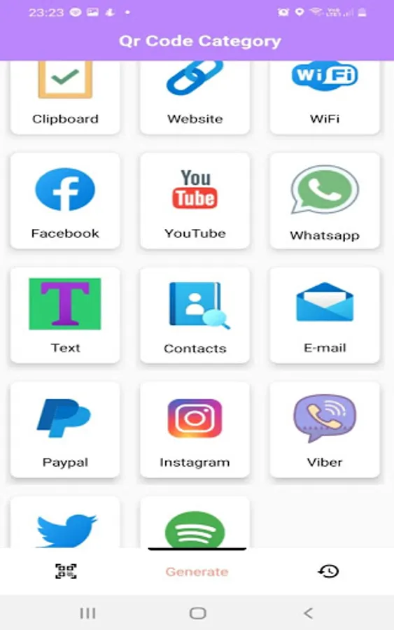 Generate Qr Code, Share Qr and Barcode, Scanned History, Enable Camera Flashlight, Enable Auto Focus, Scan Qr and barcode using Camera & Gallery Image, Generate Barcode, Generate Phone Qr code, Generate SMS Qr code, Generate Website Qr code, Generate Location Qr code, Generate Wifi Qr code, Generate Contact Qr code, Generate Event Qr code, Generate Email Qr code, Generate App Qr code
