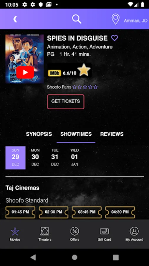 Browse showtimes, trailers, movie reviews and purchase tickets from one single app: Shoofo.