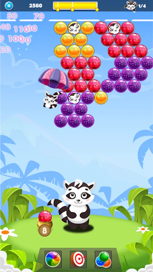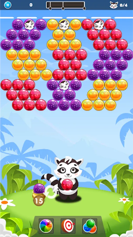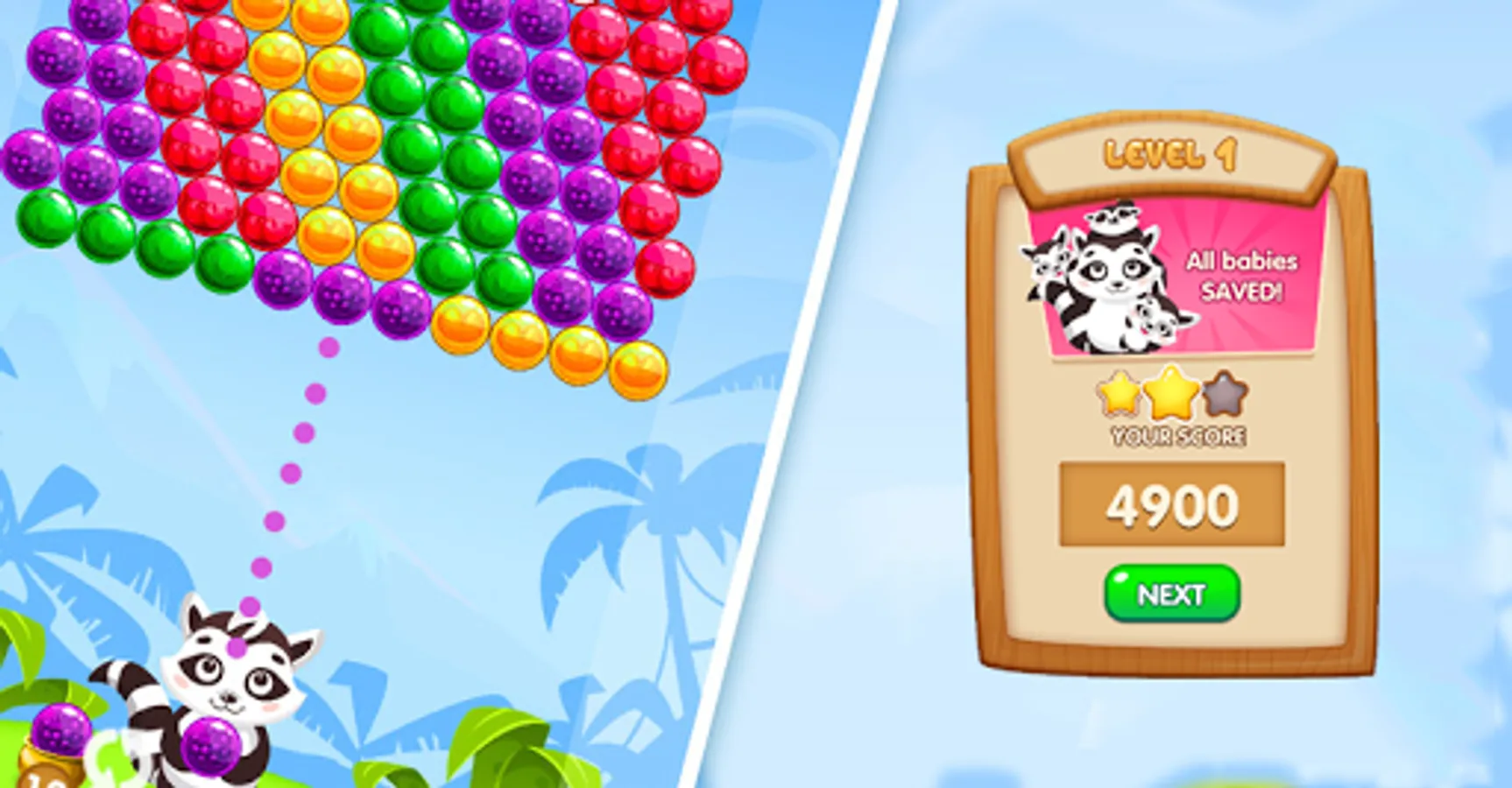 3.Clear all the bubbles on the screen to level up,and try to get 3 stars on each level.