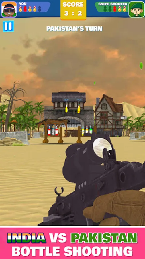 Download India Vs Pakistan Bottle Shooting Game 2023 and let's see if you earned that rank in shooting or not. There's no turning back now for all soldiers!! So, are you up for bottle shoot challenge? Become a bottle shooting master.