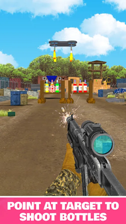 Can you hear the voice of fire? The battlefield for bottle shooting is waiting and we need shooters just like you! CHALLENGE REAL SHOOTERS ON 1V1 ONLINE BOTTLE SHOOTING. Get ready to shoot bottles comes on your way through the levels to win this bottle shooting game. Use your skills to complete the mission, shoot your target, and defeat those enemies in Bottle Shooting Game 3D. Both countries have confidence on their shooter and all counting on you soldier.