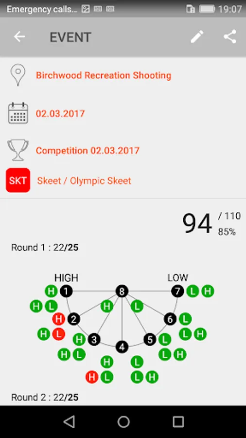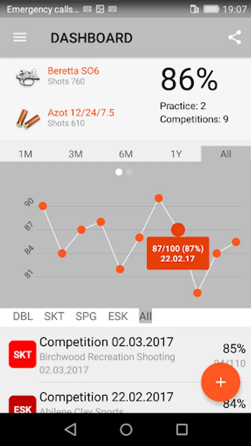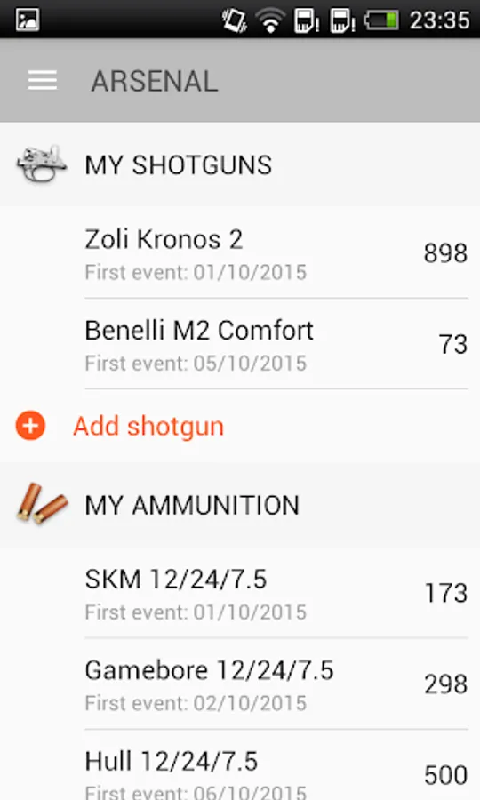 - visits to clubs and shooting grounds and statistics for each venue you’ve shot at