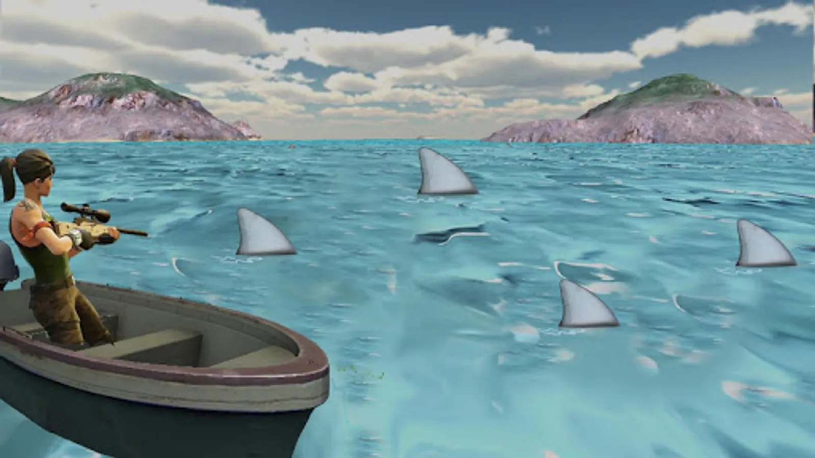 In this angry shark sniper hunting game sharks will attack your boat. They will try to damage the boat in which you are standing so you have to defend yourself against these sea monsters by killing all the sharks that are around you in the water.